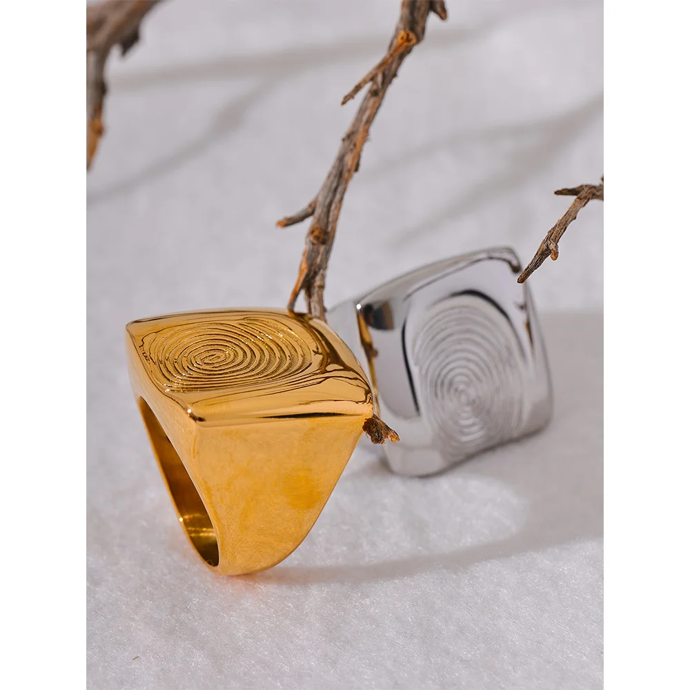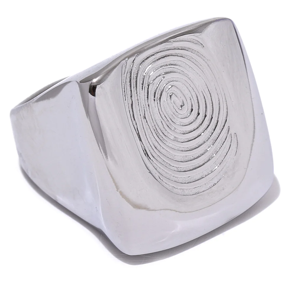 En unik ring med fingerprint-design som om någon lämnat sitt avtryck direkt i metallen. Detaljerna skapar en personlig och mystisk känsla, perfekt för dig som vill bära något meningsfullt. Välj mellan äkta 18k guldplätering eller elegant silverplätering.