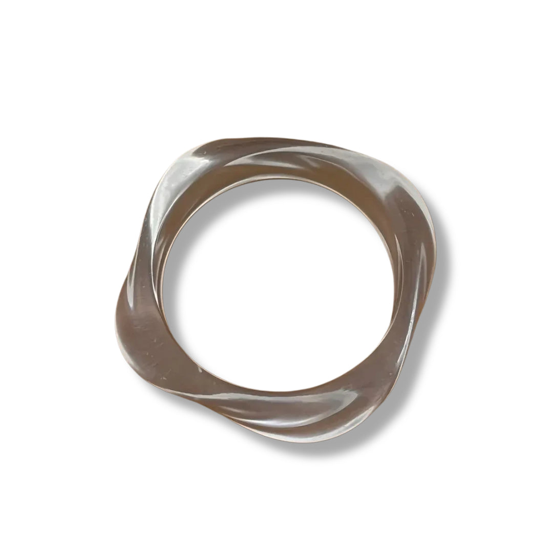 Akrylarmband i ljusgrå resin med mjuk virveleffekt. En blank och lätt accessoar som fångar ögat utan att ta över.