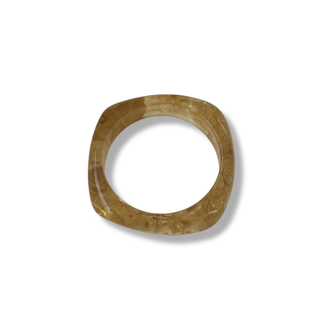 Armband i ljusgul resin med vacker marmoreffekt. Har en glansig yta och känns lätt och bekvämt att bära.