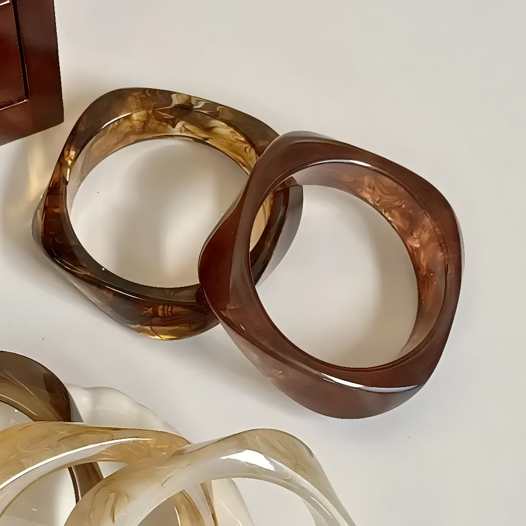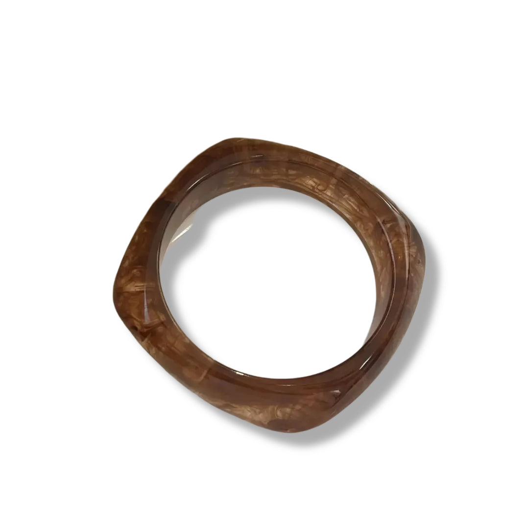 Ett unikt armband i brun resin med vacker marmoreffekt. Den fyrkantigt rundade formen ger en retro och modern känsla i ett, perfekt för dig som vill sticka ut med stil.