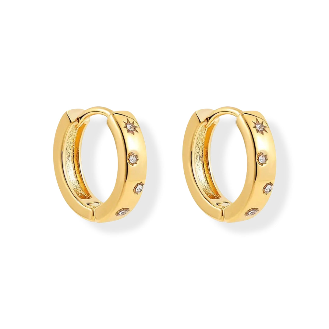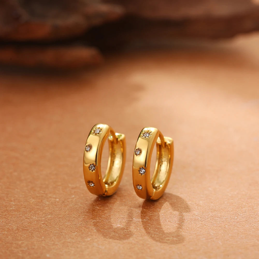 Detta 18K äkta guldpläterade örhänge pryds av gnistrande, detaljrika Zirkonia-stenar, kända för sin oslagbara lyster och hållbarhet. Ett lyxigt smycke som höjer varje look.