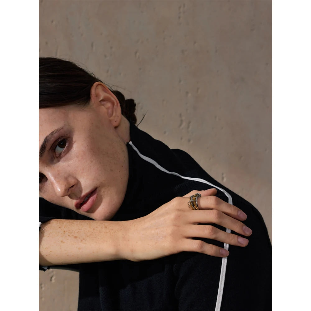 En ring med flera sammankopplade ringar som skapar en unik och häftig design. Den innovativa strukturen ger ringen ett modernt och distinkt uttryck, perfekt för att sticka ut och ge din stil en extra dimension. Kommer i både äkta 18k guldplätering och silverplätering