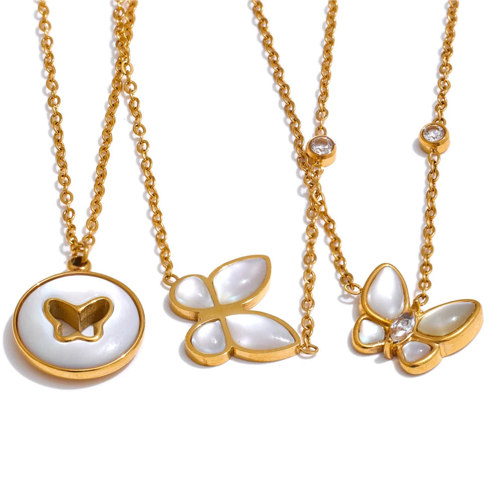 Välj mellan tre eleganta varianter av halsband med fjäril, alla pläterade i äkta guld. En sofistikerad design som symboliserar frihet och skönhet, perfekt för att ge din look en lyxig och lekfull touch.